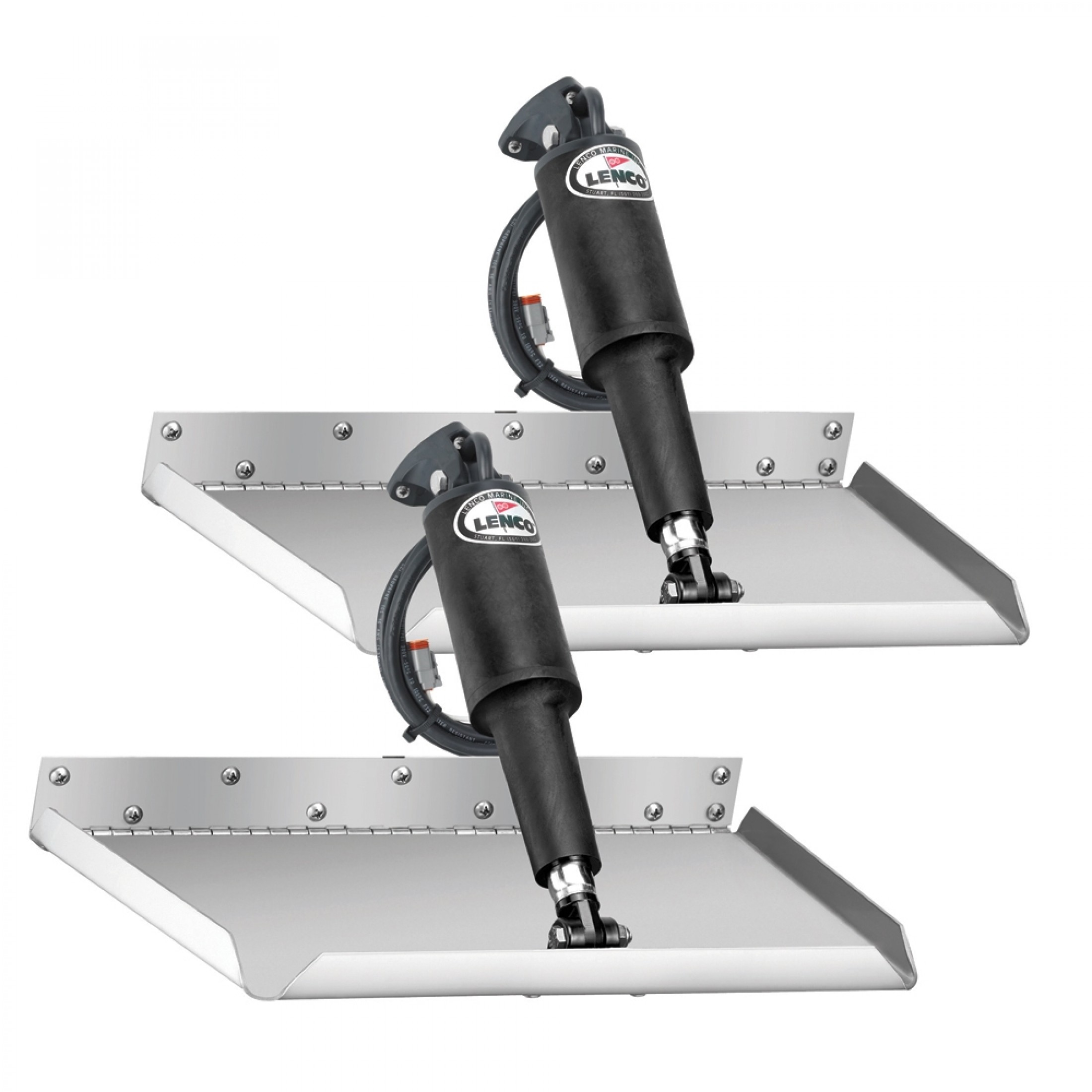 Lenco Electric Edge Mount Trim Tab Kits make your boat ride smoother, dryer, faster and with increased safety whether on a small skiff or a large yacht. The Lenco ball screw design is more reliable, three times more powerful and features an instant response, which makes them very user friendly compared to typical hydraulics. Lenco fast response electric actuators are fully submersible with all plug & play waterproof Deutsch connections. Edge Mount actuators mount at the trailing edge of the plane, requiring 4" (10.16 cm) less transom height than Lenco standard mount trim tabs.