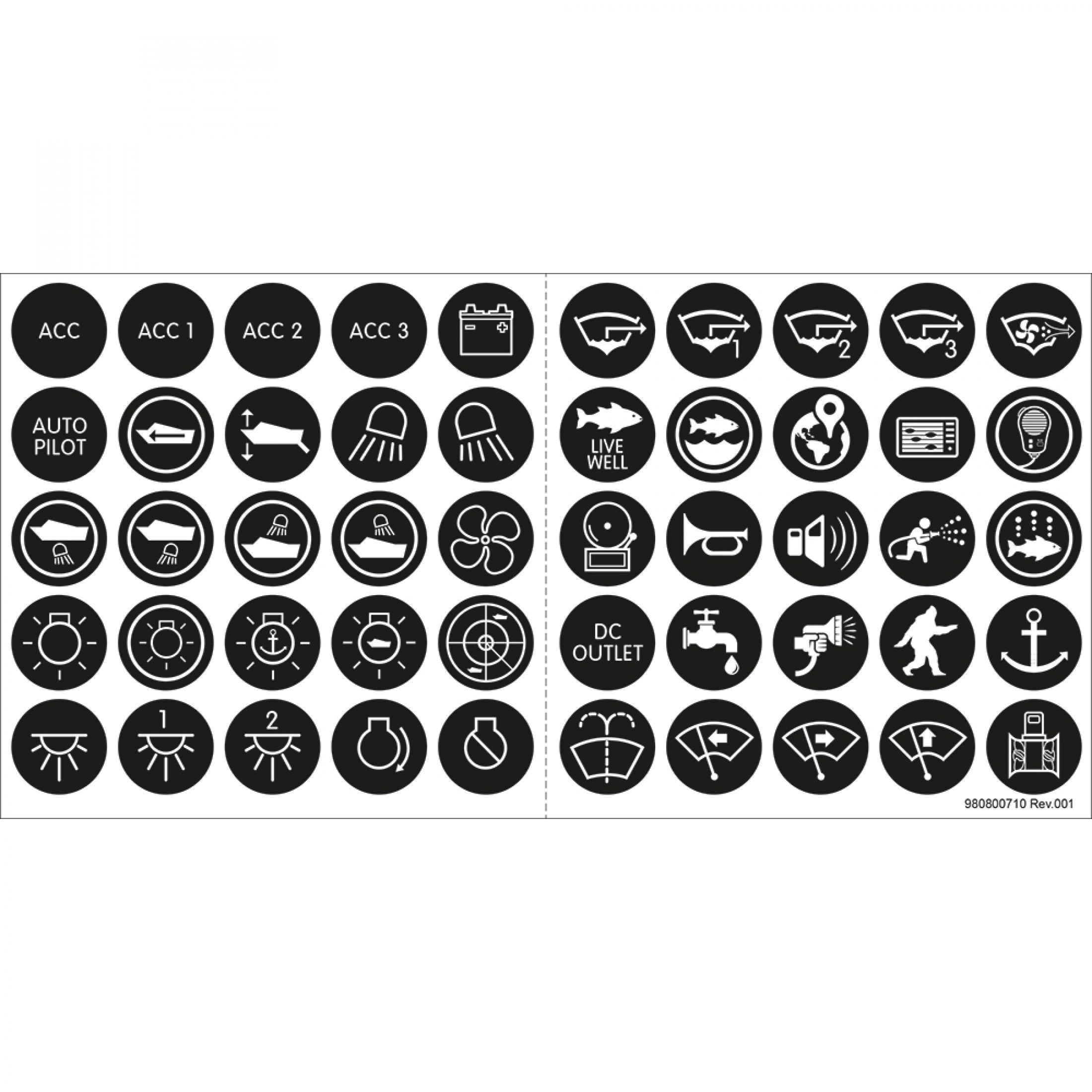 50 ICON Labels used on Backlit Push Button Switches