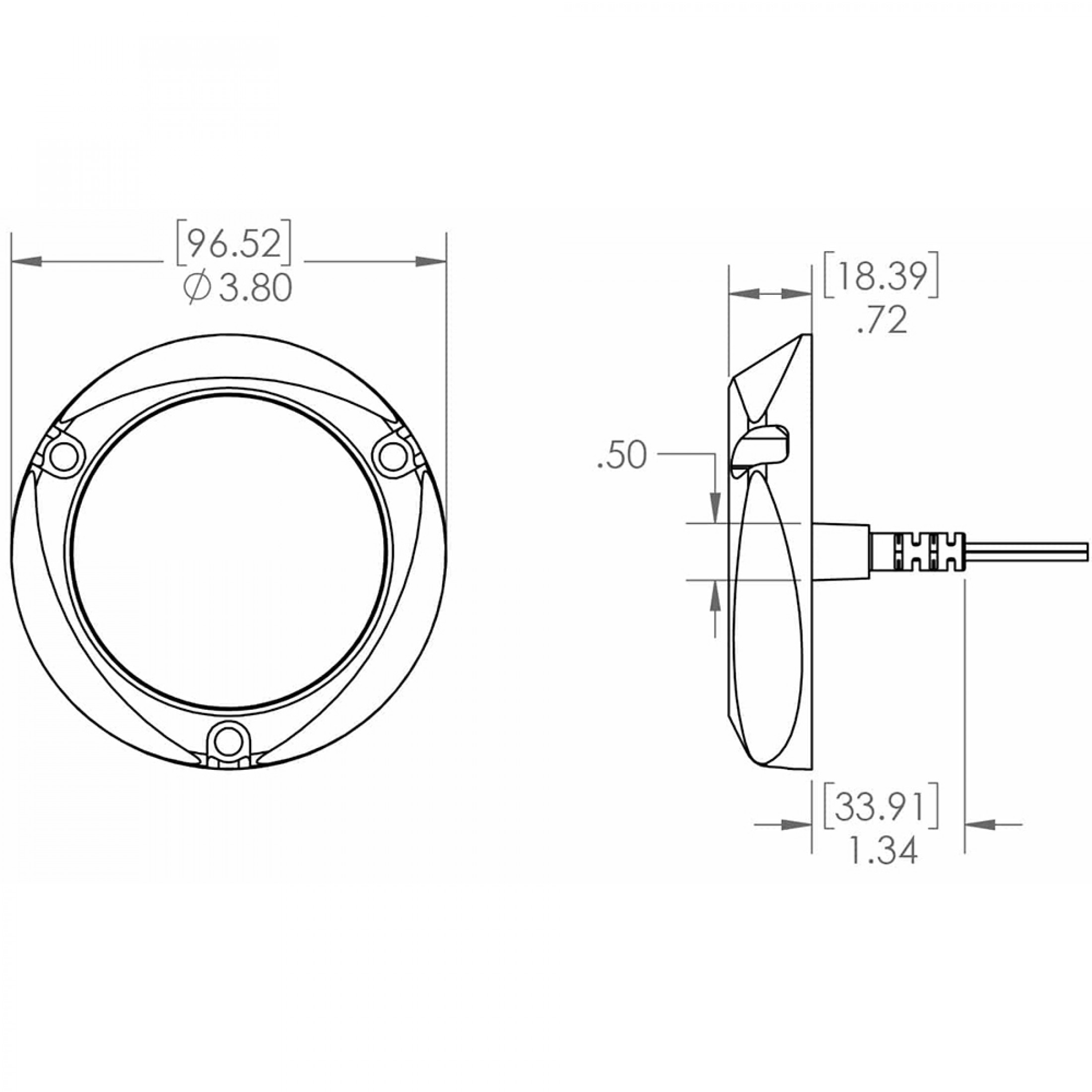 • Easy Installation - Surface mount with small 1/2" through-hull hole and simple 3-wire hook up.
