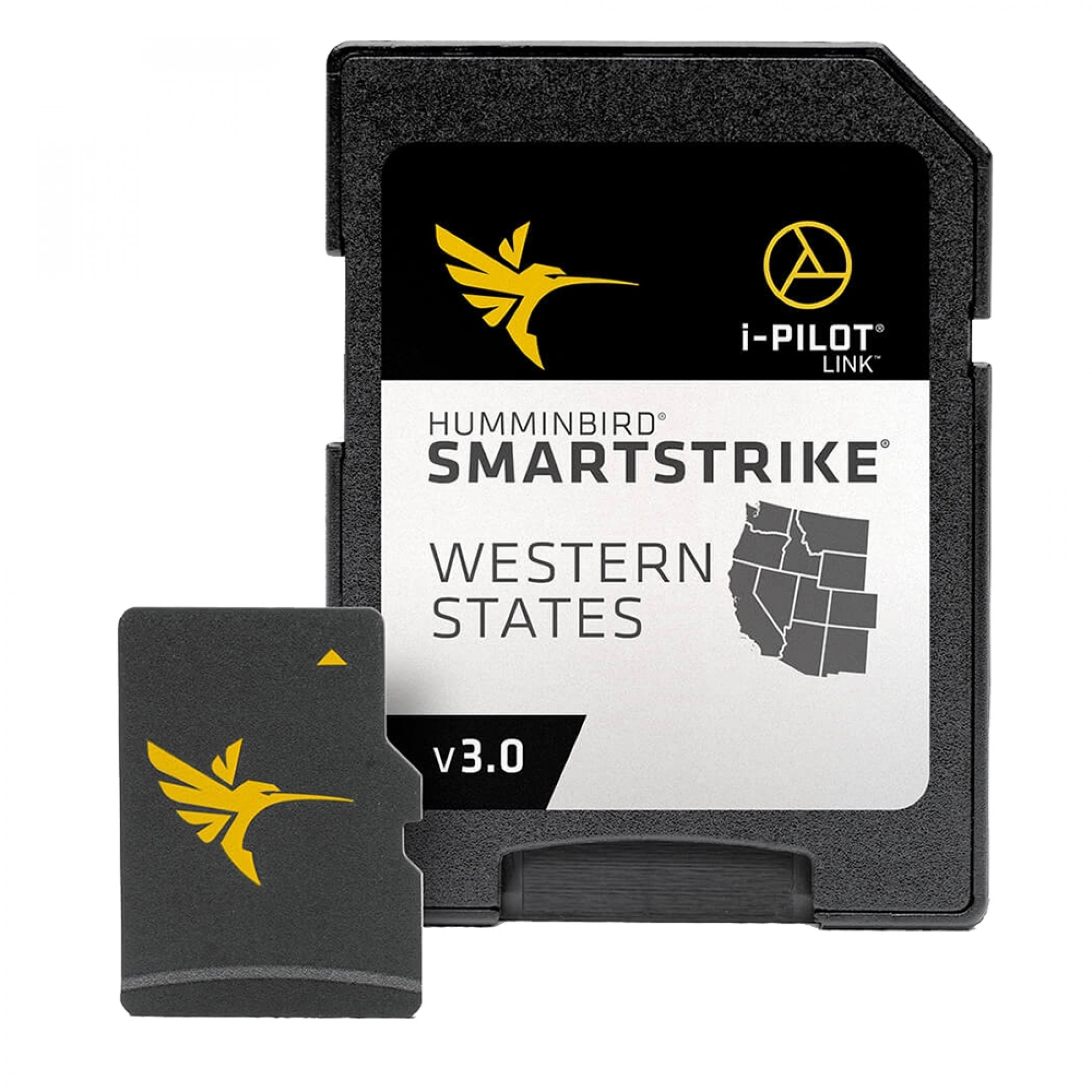 The Humminbird SmartStrike Western States Edition, Version 3, is a micro map card and SD adapter with 1,330+ lake maps, including 128 High Definition lakes from AZ, CA, CO, ID, MT, NM, NV, OR, UT, WA and WY.