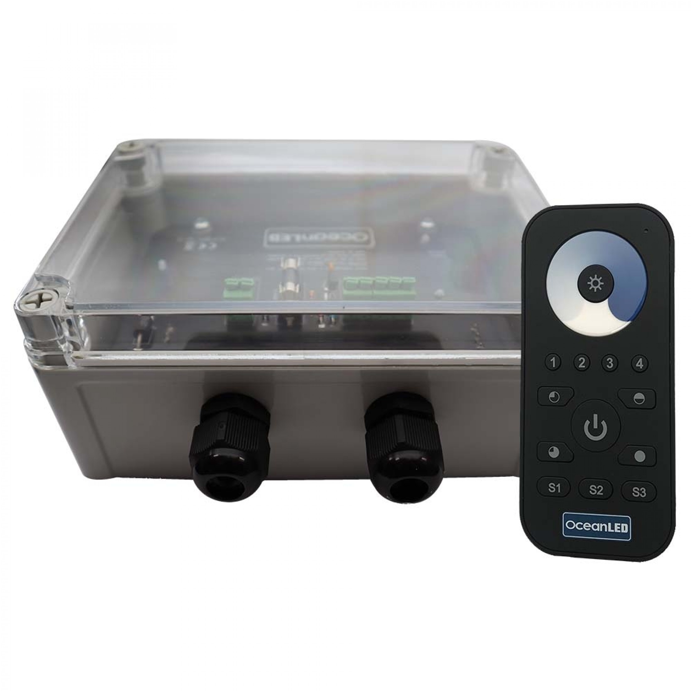 The OceanDMX RC allows you to remotely control the RGBW color or dual-color LED lighting system installed on your boat via the DMX protocol (the lighting system must be DMX compatible). The remote has 3 programmable scenes with up to 10 pre-set modes, including a pause function. You can use up to 8 different remotes to control your lights with just 1 receiver. The kit consists of the hand-held push-button remote control, provided with a waterproof pouch, and the IP68 waterproof DMX Receiver. The remote has a range of up to 20 meters* and connects with the receiver using radio frequency (RF). The OceanDMX RC has the ability to connect to 4 zones independently**, therefore you can control your transom lights independently from your port/starboard lights. The OceanDMX RC can also be used with other 3rd party DMX systems, such as deck lighting, boat signage, etc.