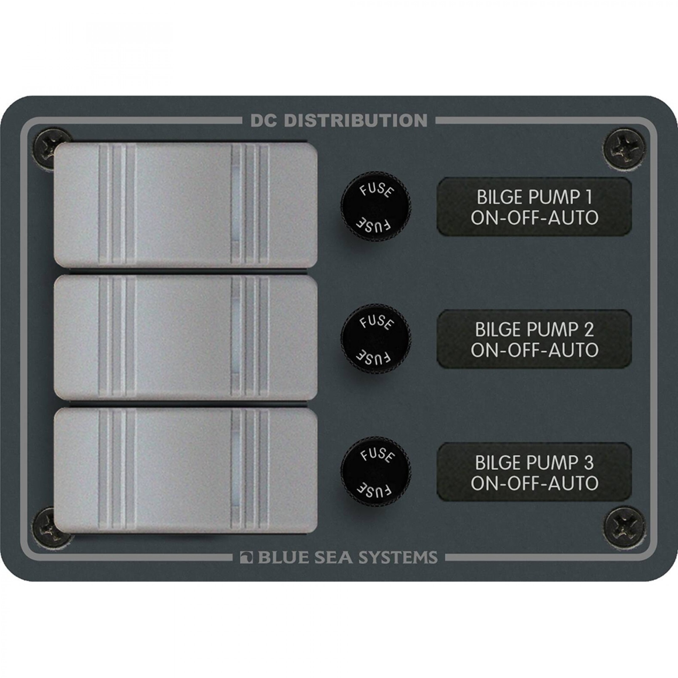 Blue Sea Systems water resistant 12/24 Volt DC Bilge Pump control panel with Contura rocker switch and fuse holder for fuses up to 20amp