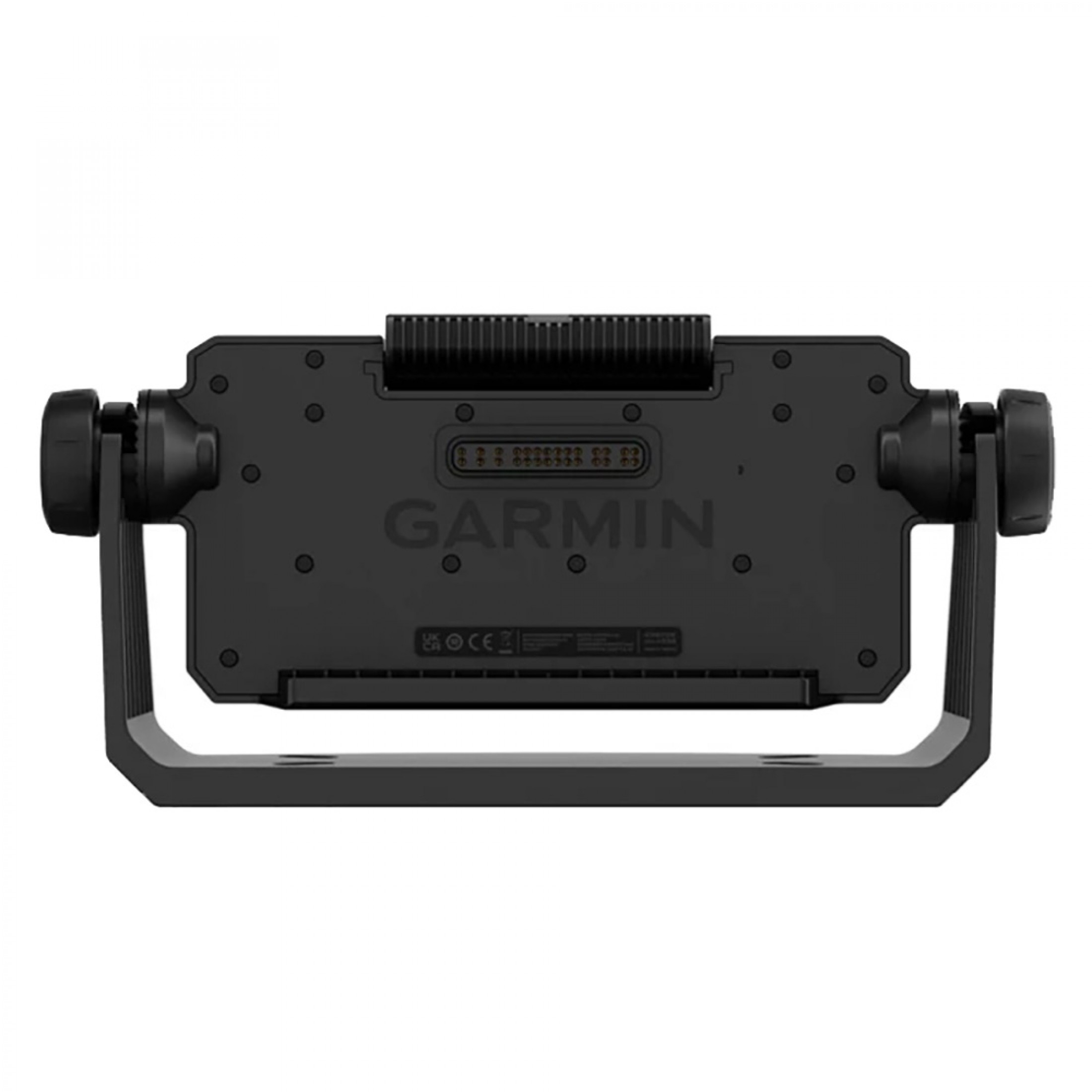 Surface mount your compatible ECHOMAP™ UHD2 chartplotter by using the bail mount with knobs; the mount tilts for optimum viewing. Plugging the cables into the mount’s quick-release cradle allows you to quickly seat/unseat your device with ease.