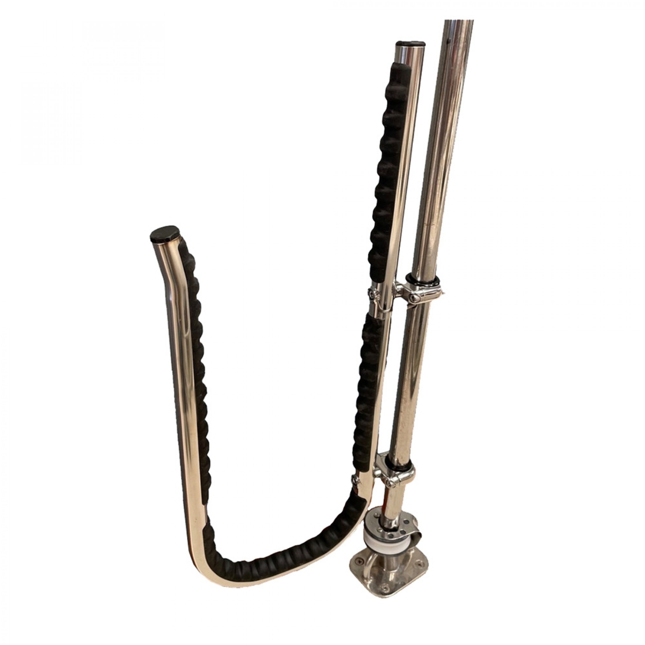 Mounts to any railing from 1" to 1-1/4" diameter. The unique mounting system allows installation on rails of varying vertical/horizontal orientations, folds flat out of the way when not in use, and is easily removed and stowed for security.