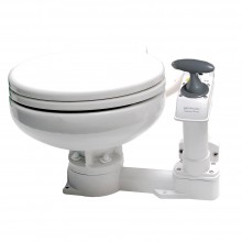 The fine finish and thought-through design of this toilet are remarkable. Made from white vitreous porcelain and with corrosion-resistant parts throughout, this AquaT toilet is quiet and easy to clean. The silent electric model is shipped with a well-proven Aqua Jet diaphragm pump. The AquaT is far from ordinary. Quiet, hygienic, and reliable, the AquaT marine toilet is perfect for almost any marine toilet room.