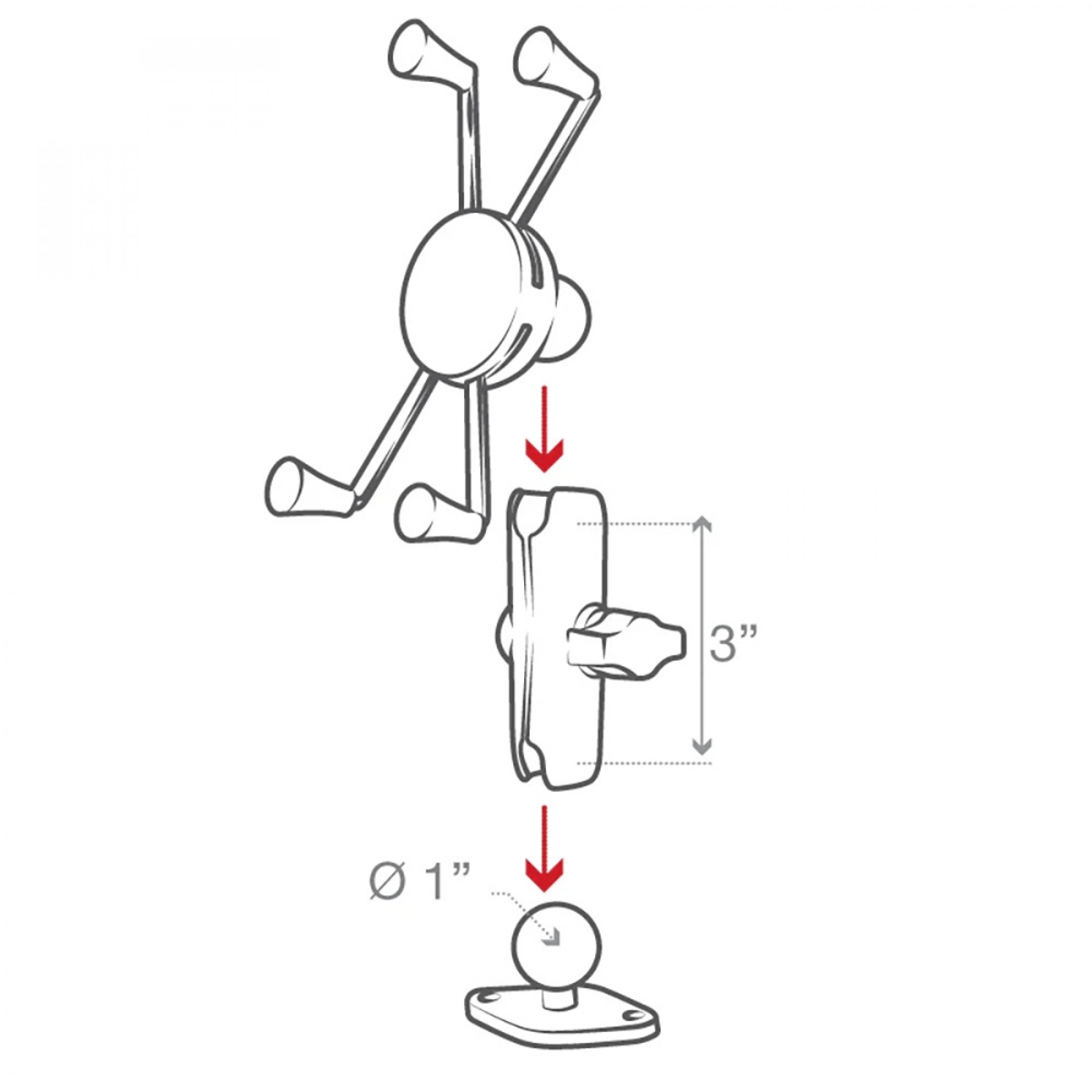 The popular spring-loaded RAM® X-Grip® phone holder features an 'X' design that expands and contracts to provide a perfect fit for your device, even if it's in a case. This large version of the RAM® X-Grip® fits phones ranging from 1.75" to 4.5" in width and keeps your device completely functional and accessible. The included diamond ball base features the industry-standard AMPS hole pattern, while RAM® ball and socket technology allows for near-infinite adjustability to achieve the ideal viewing angle, and helps to extend the life of your phone by providing shock and vibration damping. For outdoor applications, like being used as a motorcycle phone mount, the RAM® X-Grip® includes a device tether that is recommended for added security and peace of mind.
